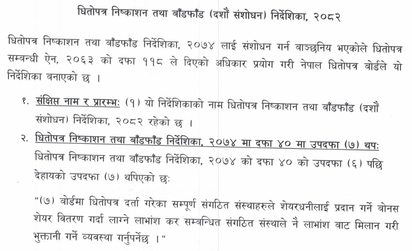 | धितोपत्र निष्काशन तथा बाँडफाँड (आठौं संशोधन) निर्देशिका, २०८१ | Nepali | |
